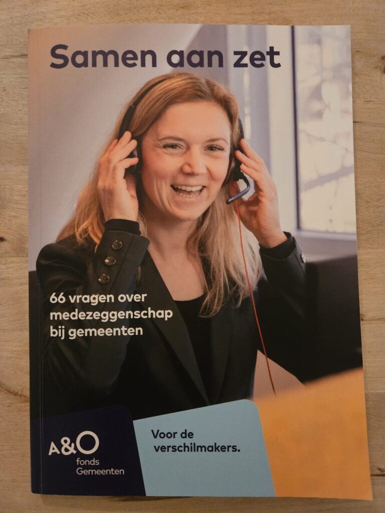 ‘Samen aan zet, 66 vragen over medezeggen-schap bij gemeenten’ heb ik in 2025 gemaakt voor OR-en bij de gemeenten. Uitgave: A&O-fonds Gemeenten.